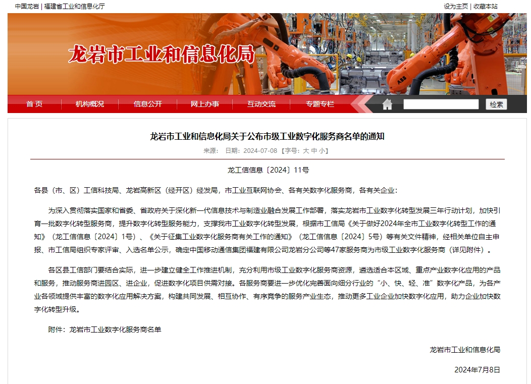 7月8日,龍巖市工信局公布了《龍巖市工業(yè)和信息化局關(guān)于公布市級(jí)工業(yè)數(shù)字化服務(wù)商名單的通知》,廈門(mén)物通博聯(lián)網(wǎng)絡(luò)科技有限公司成功入選“龍巖市市級(jí)工業(yè)數(shù)字化服務(wù)商”。
