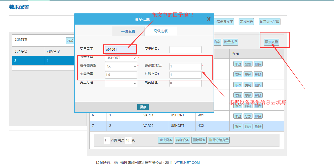 添加變量:變量名稱對應(yīng)212報(bào)文中的監(jiān)測因子編碼,最后記得重啟采集程序才能生效配置。