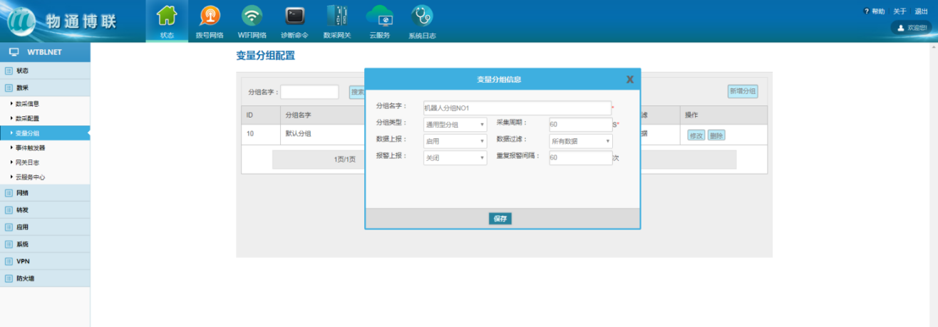 分組:數(shù)據(jù)采集涉及多個(gè)采集時(shí)間、數(shù)據(jù)過濾、報(bào)警時(shí),可通過變量分組控制,變量需要選擇到設(shè)定好的變量分組中。