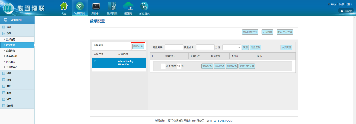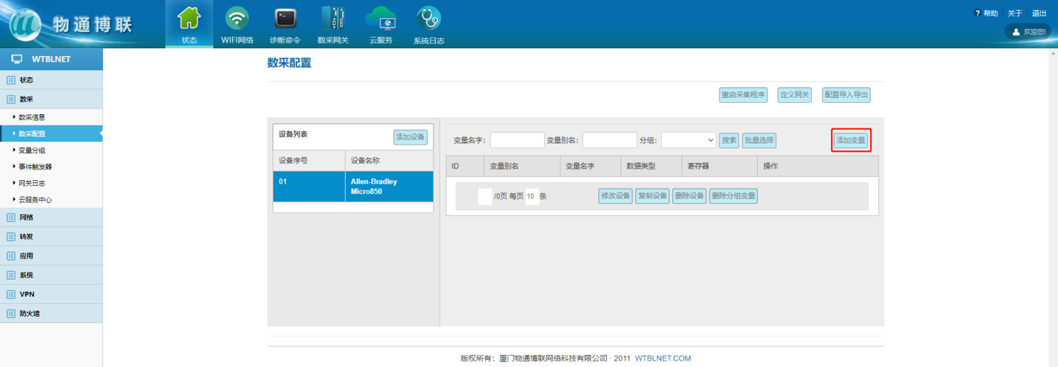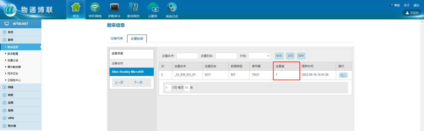 數(shù)采配置(設(shè)備信息+變量參數(shù))完成后,重啟采集程序并生效配置,即可在:數(shù)采信息—變量數(shù)據(jù)—設(shè)備名稱中看到采集上來的數(shù)據(jù)。
