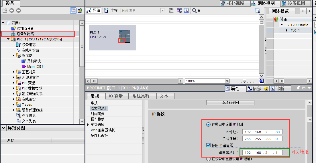 1、打開項(xiàng)目后,確認(rèn)Siemens控制器以太網(wǎng)參數(shù)。