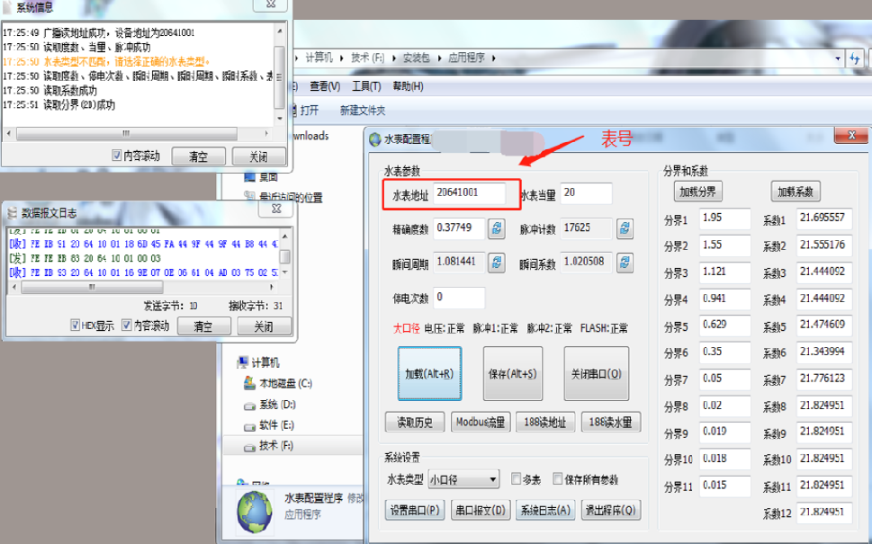 ①水表的串口線通過USB轉485線連接到電腦然后打開水表配置工具