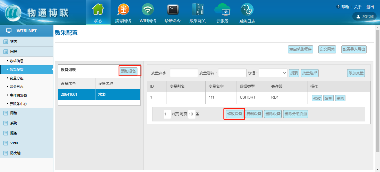 網關---數采配置---添加設備---添加變量---重啟采集程序并生效新的配置。