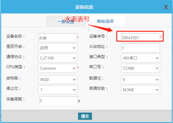 注:水表表號一定要填寫,其他的根據水表的參數進行選擇。