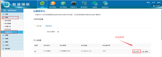 1、網(wǎng)關(guān)云中心配置