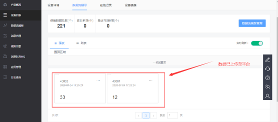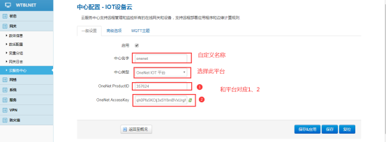 中心類型選擇OneNET IOT平臺(tái),”OneNET ProductID”和”OneNET AccessKey”要分別與平臺(tái)上的“產(chǎn)品ID”、“access_key”一致。