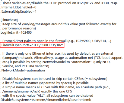 第四步:備份好后打開文件,找到;FirewallOpenPorts="TCP/5900 TCP/102"這一行,把前面的“;”分號刪除,然后保存,把文件拖拽到右邊CNC文件進行覆蓋,覆蓋過程中會出現權限不夠(不用管),直接點OK。然后點擊打開文件進行確認是否修改成功。