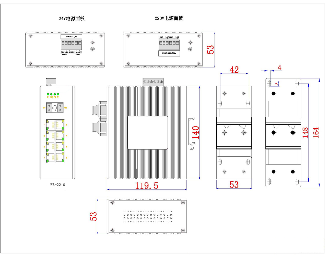 8個10/100/1000Base-T(X)自適應以太網RJ45接口 2個1000M SFP擴展槽 |