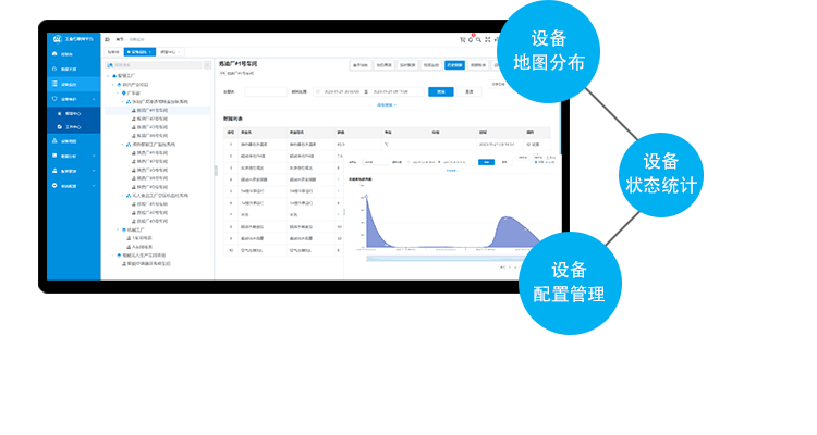 具有設備地圖展現、設備狀態統計、設備遠程配置、設備遠程管理等功能,實現對分布在全球各地的工業設備進行遠程運營管理。
