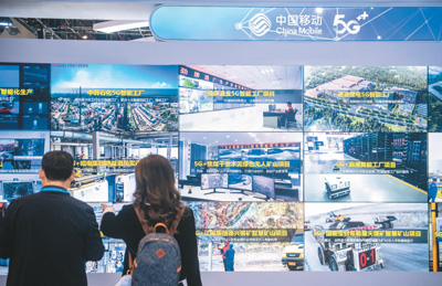 11月20日,湖北省武漢市,參觀者在2023中國5G+工業互聯網大會創新成果展上參觀。新華社記者 伍志尊攝