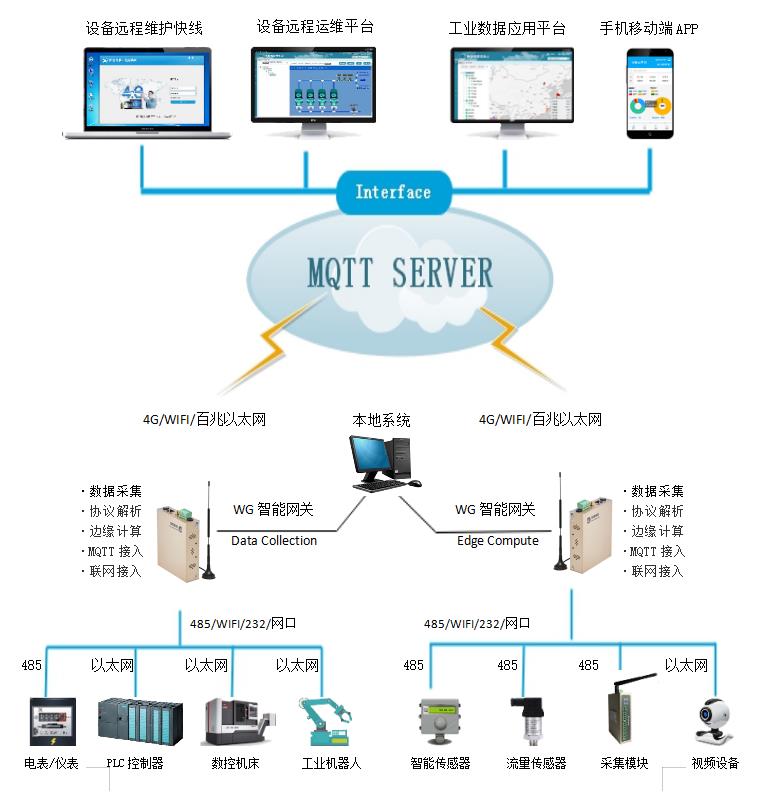 4、應(yīng)用層:電腦端/手機端提供大屏可視化監(jiān)控界面,實現(xiàn)遠(yuǎn)程監(jiān)控、故障預(yù)警、參數(shù)控制、生產(chǎn)報表生成與數(shù)據(jù)分析等功能。