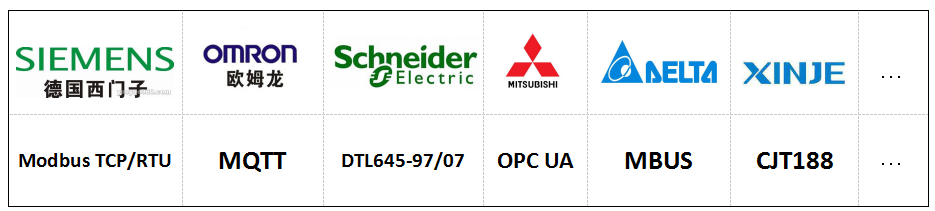 2.PLC通訊協議:modbus TCP、modbus RTU、西門子、三菱、歐姆龍、臺達等