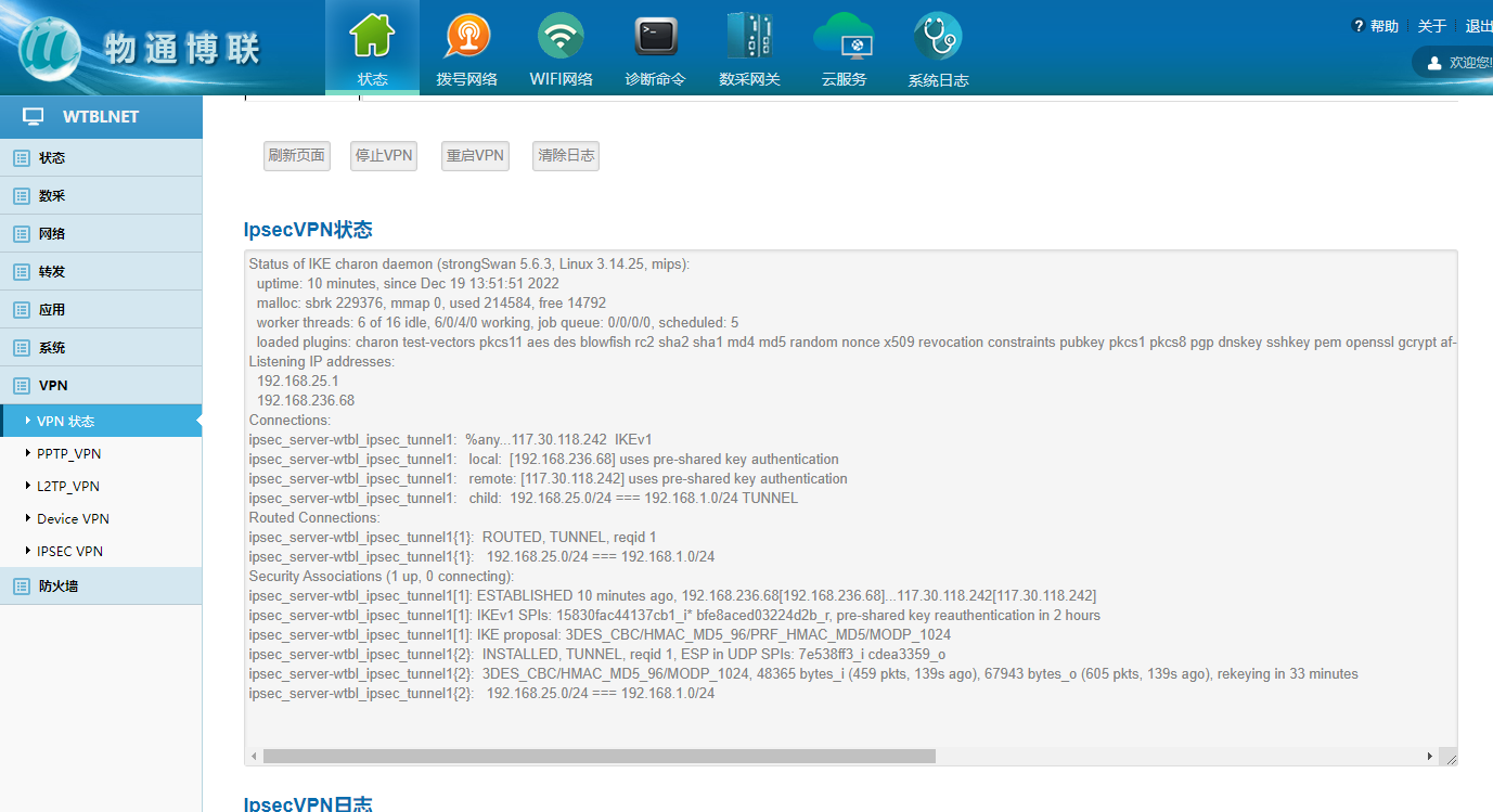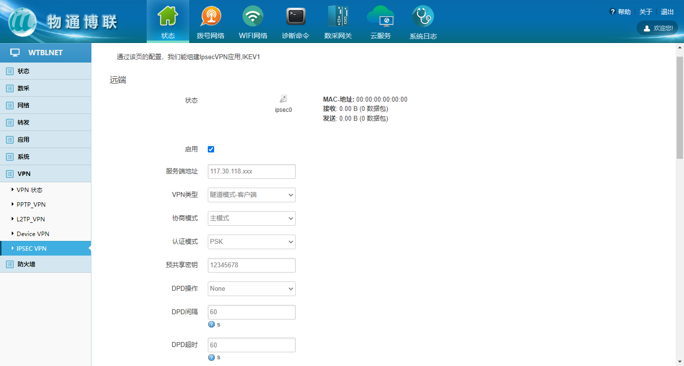 物通博聯網關支持IPSEC VPN,幫助企業構建高安全性的數據采集系統