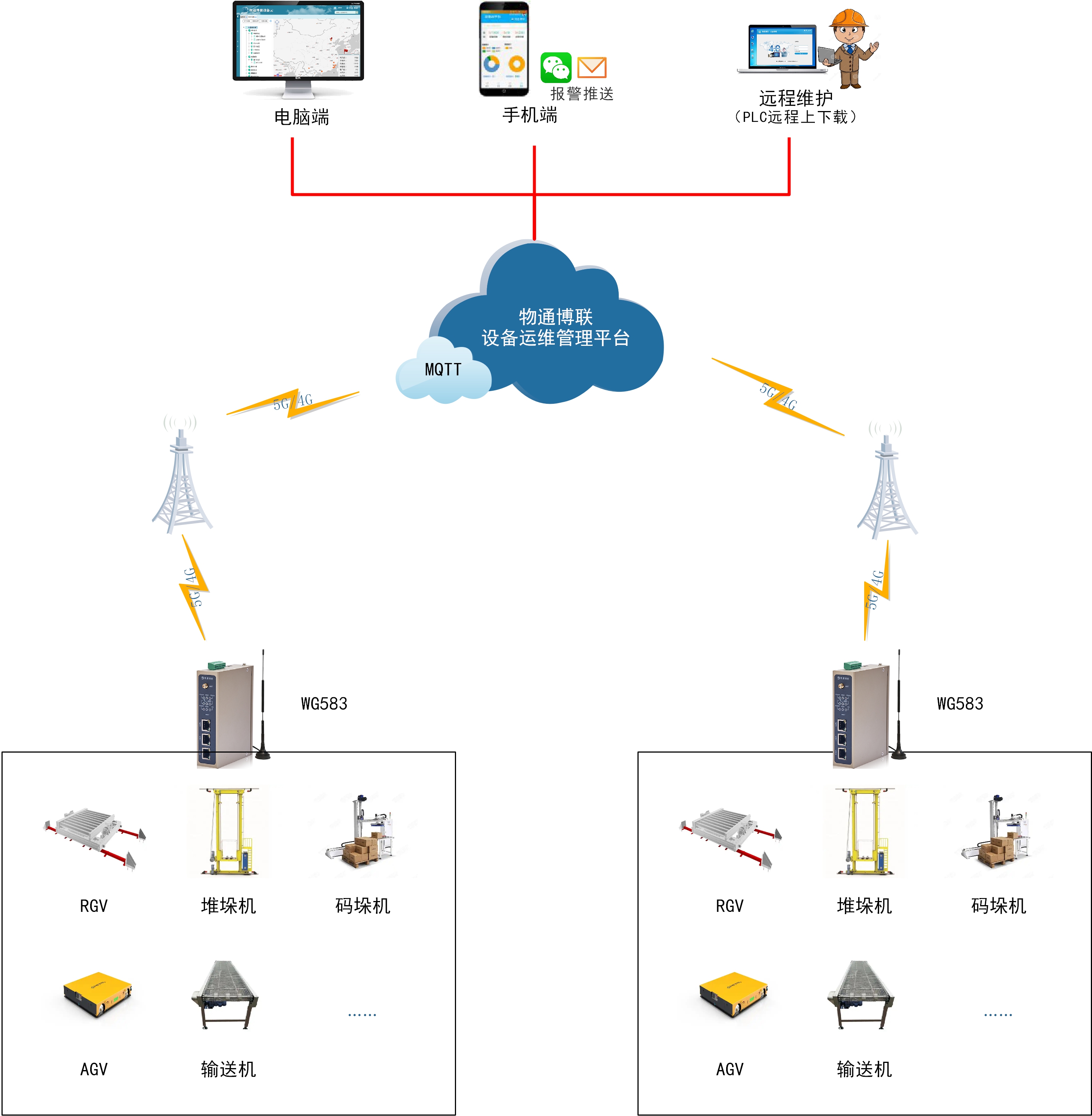 以往設備出現故障由客戶報修,企業派工程師前往現場進行排查和維護工作。隨著經營規模越來越大,繁重的運維工作量、高昂的出差食宿成本等問題成為影響企業經營利益的重要因素。因此要求實現倉儲設備的遠程維護,即PLC遠程上下載程序。